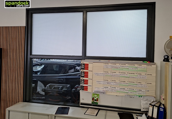 Ramen voorzien etched glass’ folie autobedrijf Ambergen Winschoten
